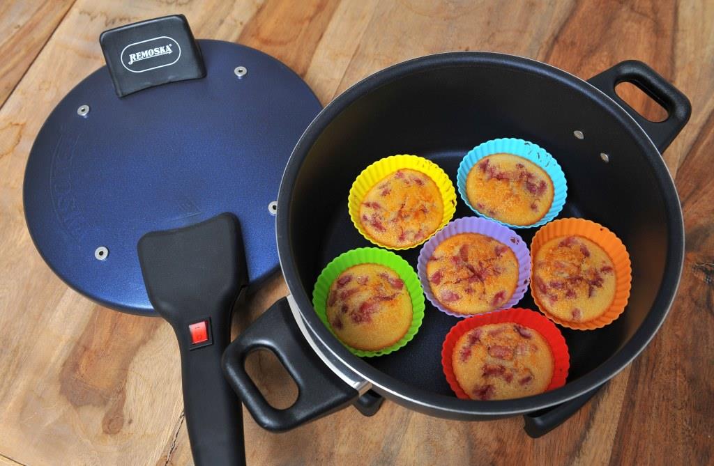 Kromě ingrediencí budete potřebovat ještě košíčky na muffiny, případně silikonové formy. Do menší REMOSKY® se jich vejde 5, větší model pojme 10 kousků.