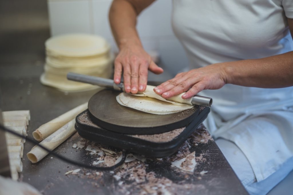 Hořické trubičky se mohou pyšnit ruční výrobou. Je to ovšem docela alchymie, lidský faktor je opravdu nezbytný. Každá oplatka je totiž jedinečná, což by stroje nedokázaly zohlednit.