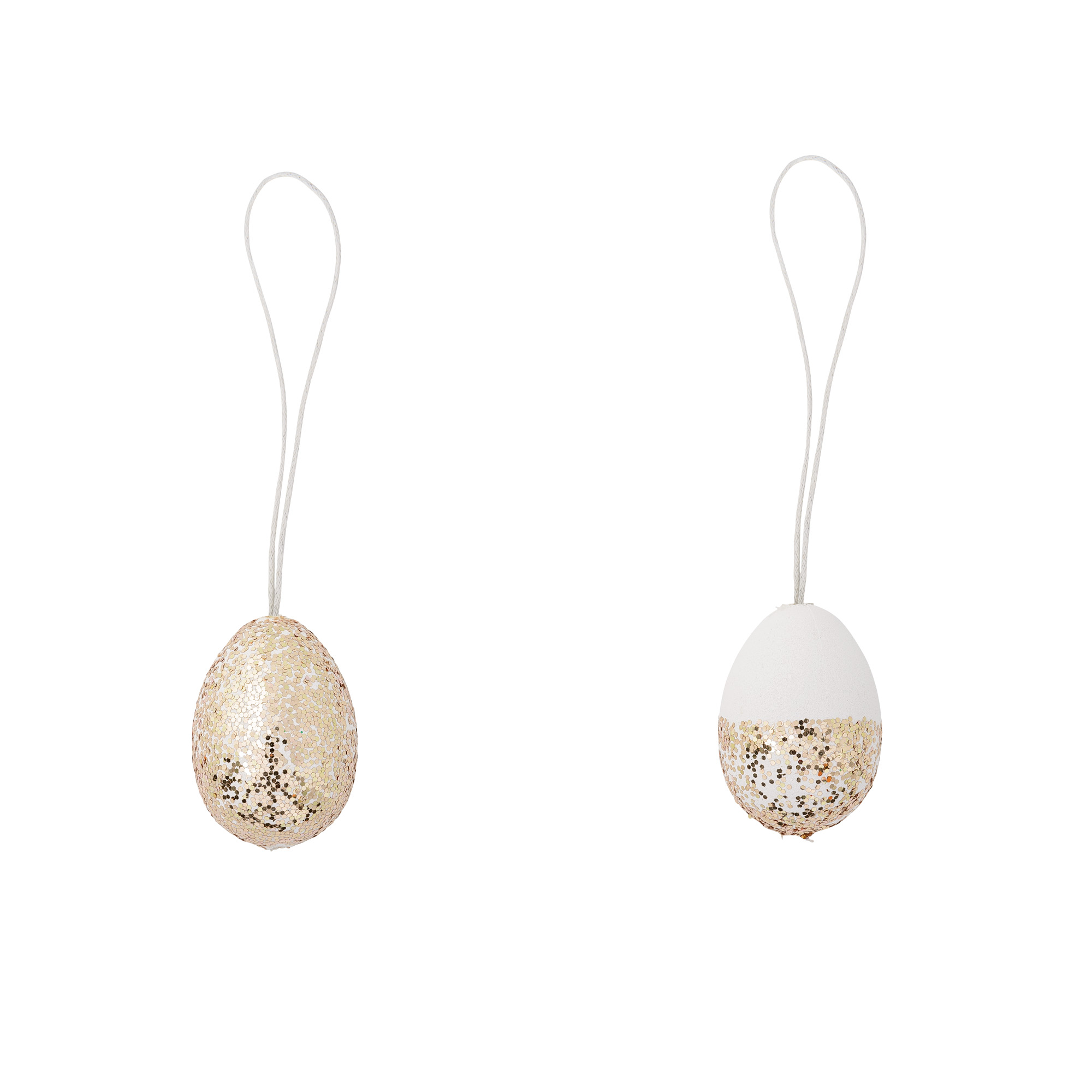 • Vajíčko se zlatými glitry a matně bílou barvou, velikost výška 7 cm, průměr 5 cm, cena 59 Kč, vajíčko se zlatými glitry, výška 7 cm, průměr 5 cm, cena 59 Kč