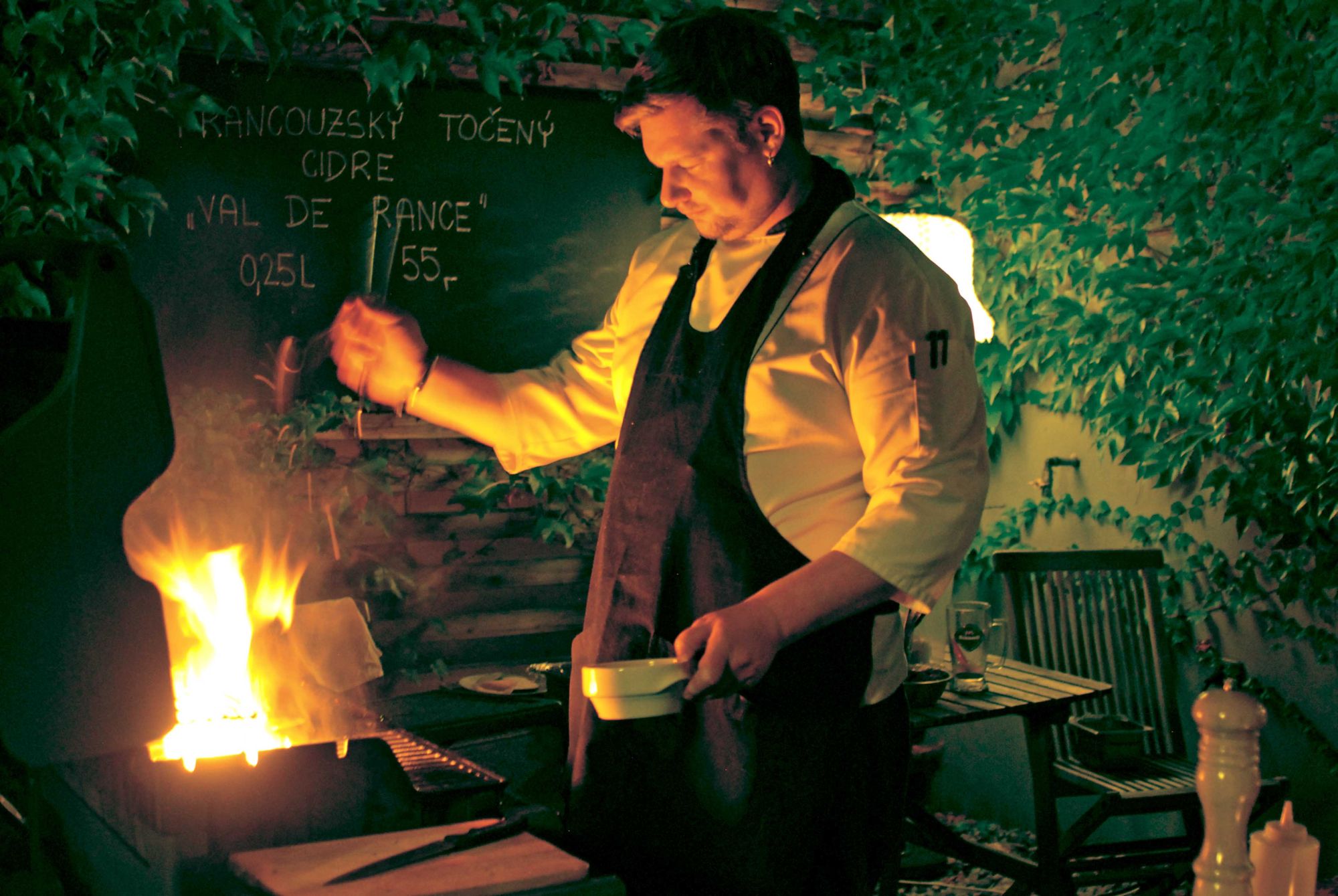 Z venkovního posezení vidíte přímo na bylinkovou zahrádku, která kromě toho, že hezky vypadá, samozřejmě slouží i k dochucování pokrmů. Takový čerstvě utržený tymián nebo rozmarýn je s kouskem másla na právě ugrilovaném steaku opravdová lahoda. Každý večer se můžete těšit i na dokonalé dezerty a sorbety, které vás v parném létě příjemně zchladí. Proti horku můžete úspěšně bojovat i domácími ledovými čaji nebo skvělými limonádami s ovocem, bylinkami nebo citrusy. Za ochutnávku stojí i nová italská a kalifornská vína a oblíbený cider.