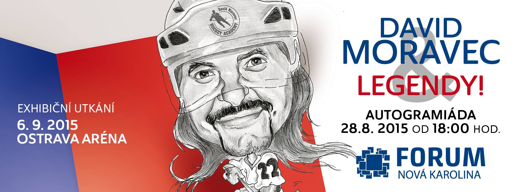V pátek 28. srpna od 18 hodin se v přízemí obchodního centra Forum Nová Karolina uskuteční autogramiáda s pozvánkou na hokejovou exhibici, v rámci které proběhne aukce podepsaných originálních dresů, jejíž výtěžek bude sloužit k výchově mladých hokejistů. Tímto dnem také vyvrcholí soutěž o podepsané dresy a vstupenky na střídačku. Pokud chcete být u toho, není nic jednoduššího. Více informací na www.forumnovakarolina.cz a facebooku.