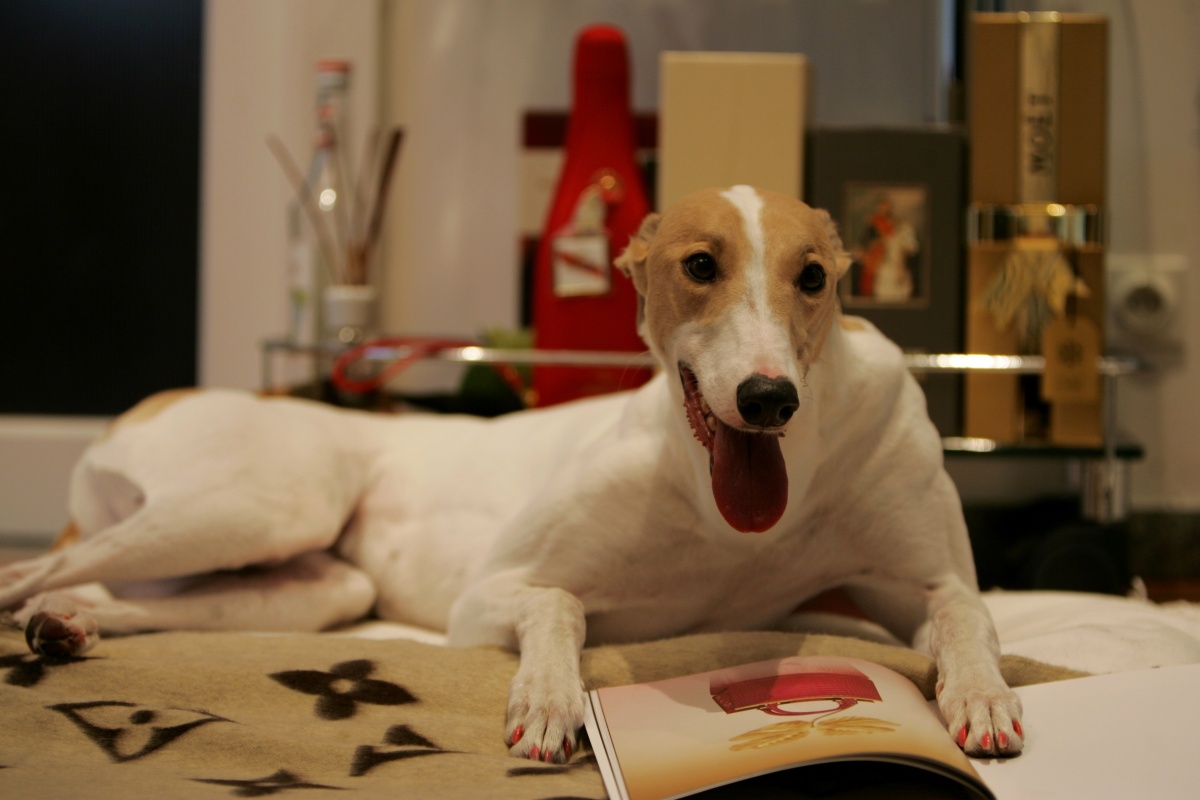 Někdo by mohl namítat, že je to pouze pes, který okolnímu světu vůbec nerozumí. Majitelka Jarmila Grondolová Vuittonce nepřikazuje nějakými povely, ale mluví s ní, jako by byla člověk: „Domlouvám jim jako dětem, slovy, jak mě to právě napadne, a chrti mi moc dobře rozumí. Ráno říkám: Dobré ránko, holky a kluci – vstáváme. Jdeme dělat „šušu“ a „kaku“ a oba chrti se sami odeberou k příslušným dveřím a vyjdou ven do zahrady“. Vuittonka jí tedy ne jenom dobře rozumí, ale je si moc dobře vědoma i své slávy a dává ji patřičně najevo. Hrdě si vykračuje po boku své majitelky a všude kam přijde, postává v líbivých pózách, kdyby zde náhodou číhal paparazzi, protože na všech fotkách musí vypadat vždy skvěle. „Vuittonka je trochu koketa – to už se všeobecně ví. Když si ji déle nevšímáte, přijde a přejede svým čumáčkem vaši ruku, tak rychle a tak jemně, že ani nevíte, zda-li vás lízla, nebo si to jen myslíte a natočí svá záda, či spíš krásný zadeček k pohlazení. Vuittonka je téměř stále rozesmátá a veselá. Všimněte si jejího rošťáckého úsměvu na fotografiích, či spikleneckého mrkání jedním očkem“, popisuje chování Vuittonky majitelka Jarmila Grondolová. Už byla pozvána i do televize, kde se předvedla v plné parádě a moderátoři skoro přišli o svůj hlas úžasem z její přítomnosti.