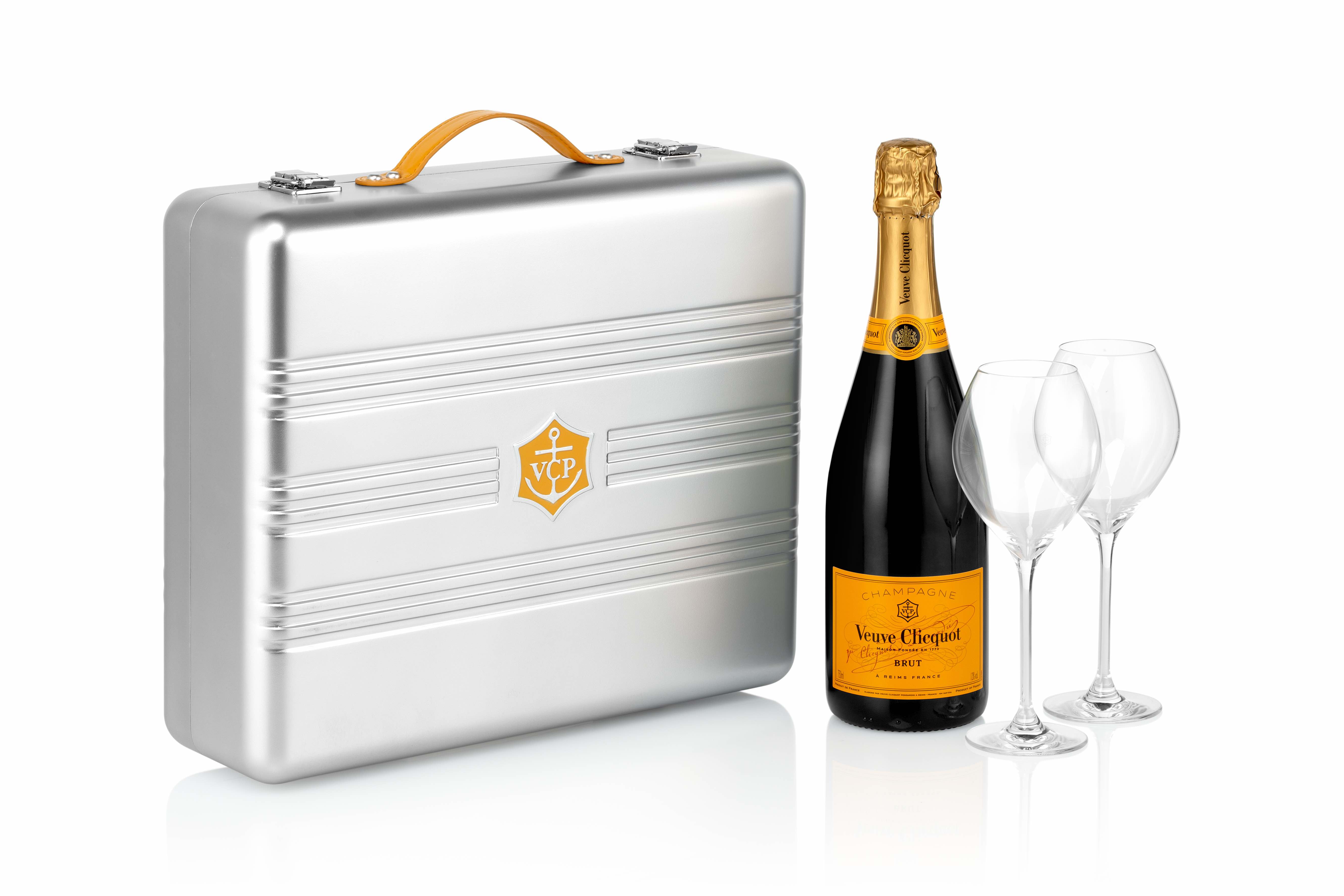 Šampaňské Veuve Clicquot propojuje všechny kouty světa. Je průvodcem slavnostních chvil i intimních okamžiků v kruhu nejbližších. Jeho kosmopolitní povahu připomíná i limitovaná edice Veuve Clicquot Suitcase, dárková sada šampaňského a 2 sklenek ukrytých v metalickém kufříku. Tento design odkazuje na cestování a je spojen s myšlenkou poštovní dopravy a transportu šampaňského vína z křídových sklepů ve francouzské Remeši k milovníkům šampaňského po celém světě. Elegantní stříbřitý kufřík zdobí výrazné akcenty v ikonické žluté barvě. Pouzdro je izotermické a dokáže uchovat šampaňské ve skvělé kondici pro podávání po dobou několika hodin. Limitovaná edice bude v prodeji od srpna 2015 ve specializovaných prodejnách a e-shopech. Doporučená maloobchodní prodejní cena: 2.500 Kč.