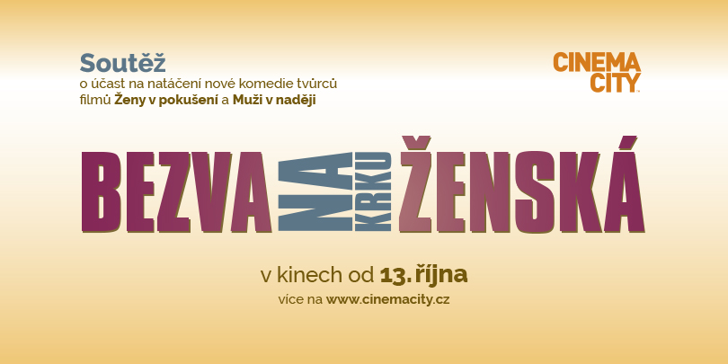 Soutěžte s Cinema City a zažijte pravý natáčecí den! Budete přímo na place, potkáte se s herci, uvidíte, jak funguje veškerá technika používaná k natáčení a mnoho dalšího! Nenechte si ujít tuto jedinečnou příležitost a zjistěte, jak se točí film na vlastní kůži. Tvůrci snímků Ženy v pokušení a Muži v naději právě natáčejí svoji novou komedii BEZVA ŽENSKÁ NA KRKU s Ondřejem Vetchým a Petrou Hřebíčkovou v hlavních rolích a vy můžete být díky Cinema City při tom! Soutěžte na webu a Facebooku Cinema City a tři z vás získají možnost se s doprovodem podívat přímo na natáčení. Soutěž trvá do 22. června 2016 a výherci budou vyhlášeni v ten samý den na Facebooku Cinema City ČR.