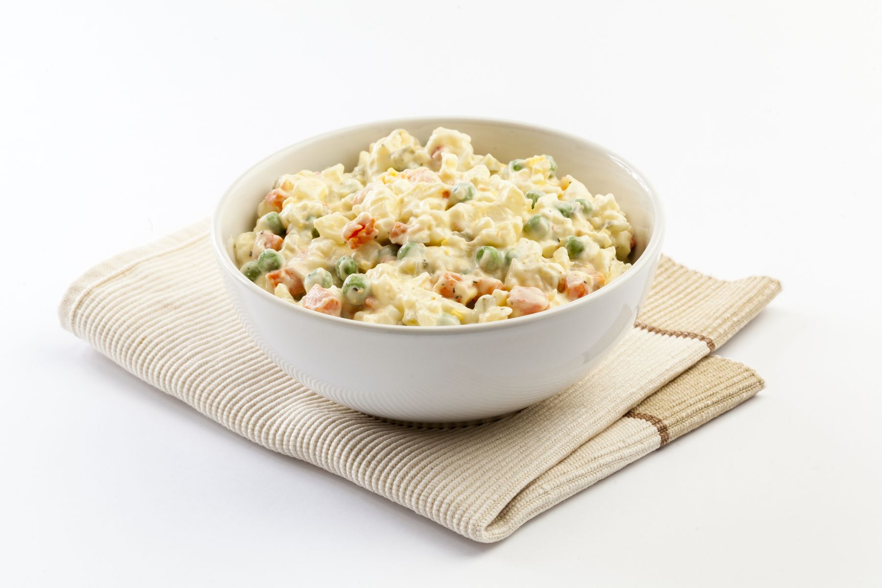 Mraženou zeleninovou Směs na bramborový salát 450 g vsypte do hrnce s půl litrem osolené vroucí vody. V zakrytém hrnci krátce povařte, sceďte a nechte vychladnout. Do vroucí osolené vody dejte vařit brambory, uvařte ve slupce a nechte vychladit. Poté nakrájejte na kostičky. Uvařte 2 vejce natvrdo, které po vychladnutí nakrájejte na kostičky. Mezitím si pokrájejte nakládané okurky na malé kousky. Vše smíchejte, osolte, opepřete a přidejte majonézu podle chuti. Můžete ozdobit petrželkou a nechte v chladu.