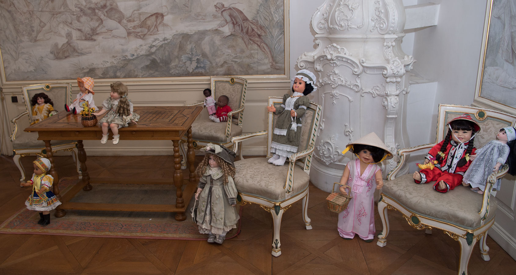Nejstarší panenky, které jsou na zámku k vidění, pocházejí z počátku dvacátého století a všechny se mohou chlubit tím, že prošly dětskýma rukama. Zámecká výstava se může rovněž pyšnit podtitulem mezinárodní. „V hostinských saloncích, ložnicích a spisovatelském pokoji se návštěvníci setkají s panenkami z celého světa – nechybí panenky vietnamské, číňanka v originálním kroji, skotský tulák či indiánka. Stejně tak jsou ale zastoupeny exponáty, které vznikly v nedaleké Příbrami, v závodu hraček Hamiro, jenž byl od roku 1932 největším výrobcem hraček u nás,“informuje Tereza Vyhlasová.