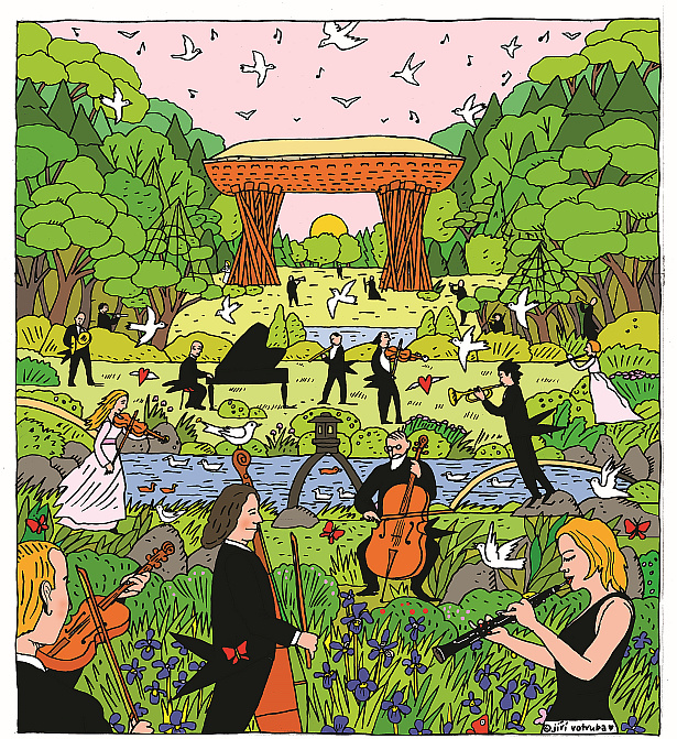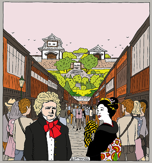 Právě v zemi vycházejícího slunce jsou Votrubovy vtipné obrazy, kresby a plakáty velmi populární – Jiří Votruba zde už mnoho let vytváří vizuální podobu hned několika významným festivalům zaměřených na klasickou hudbu. V rámci pražského Národního divadla umělec spolupracuje s Dětskou operou Praha, pro kterou navrhuje originální výpravu.