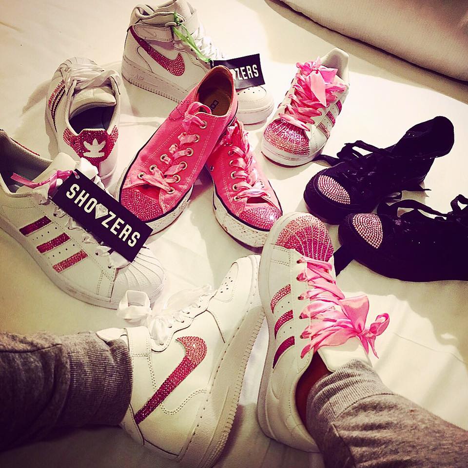 Asi nikoho nepřekvapí, že boty jsou růžové. Boty od SHOOZERS, jsou ručně vykládané křišťály Swarovski. Jejich majitelka se tak už rozhodně nemusí bát, že by nevynikla. Pokud tedy chcete být hvězdou každé party, s těmito botami stoprocentně vystoupíš z davu. Pomůžou ti nejen třpytivké šperky, ale také písmeno D, což je autorský nápad jedné z nejúspěšnějších českých blogerem. Converse Swarovski Pink Pink Low jsou tou nejepší volbou pro každou rebelku.