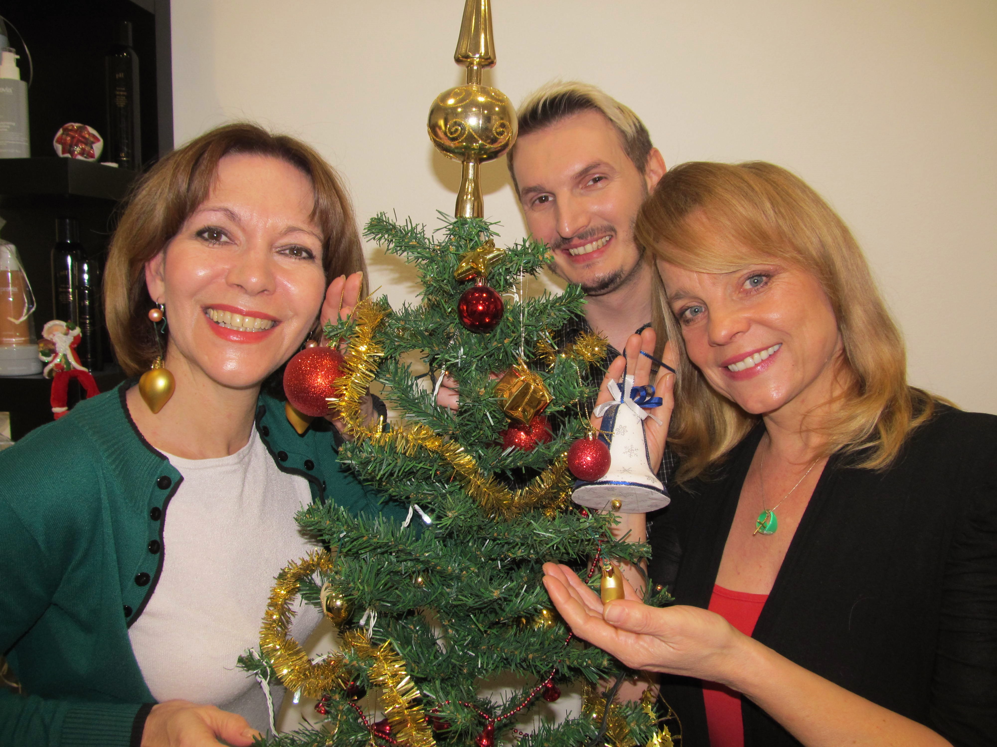 Při té příležitosti si Michaela nechala od svého kadeřníka přibarvit kštici. „Martin mi prosvětlil hnědou a ještě jednou tuhle proceduru podstoupím za čtvrt roku. Dál ale ne, proto že nechci být platinovou blondýnou. Pak zase půjdu dohněda. A sama sobě jsem si slíbila, že experimenty končí u rezavé barvy. Do toho bych nešla. Ale jinak si říkám, že když má člověk odvahu na změnu, pořád ještě žije,“ věří Dolinová. Mezi věrné klienty, který se vánočního „dýchánku“ účastnili, byla bavička Anife Vyskočilová, která svým poprsím málem zbortila stromek. Společně s Michaelou se zdobení chopila i herečka Veronika Jeníková. Dabérka a herečka Valérie Zawadská, které Martin pěstí dlouhé kadeře, místo kratičkého ježečka, kterého nosívala dříve. Moderátor Petr Vojnar se trochu spletl a na místo stromku zdobil svého kadeřníka.