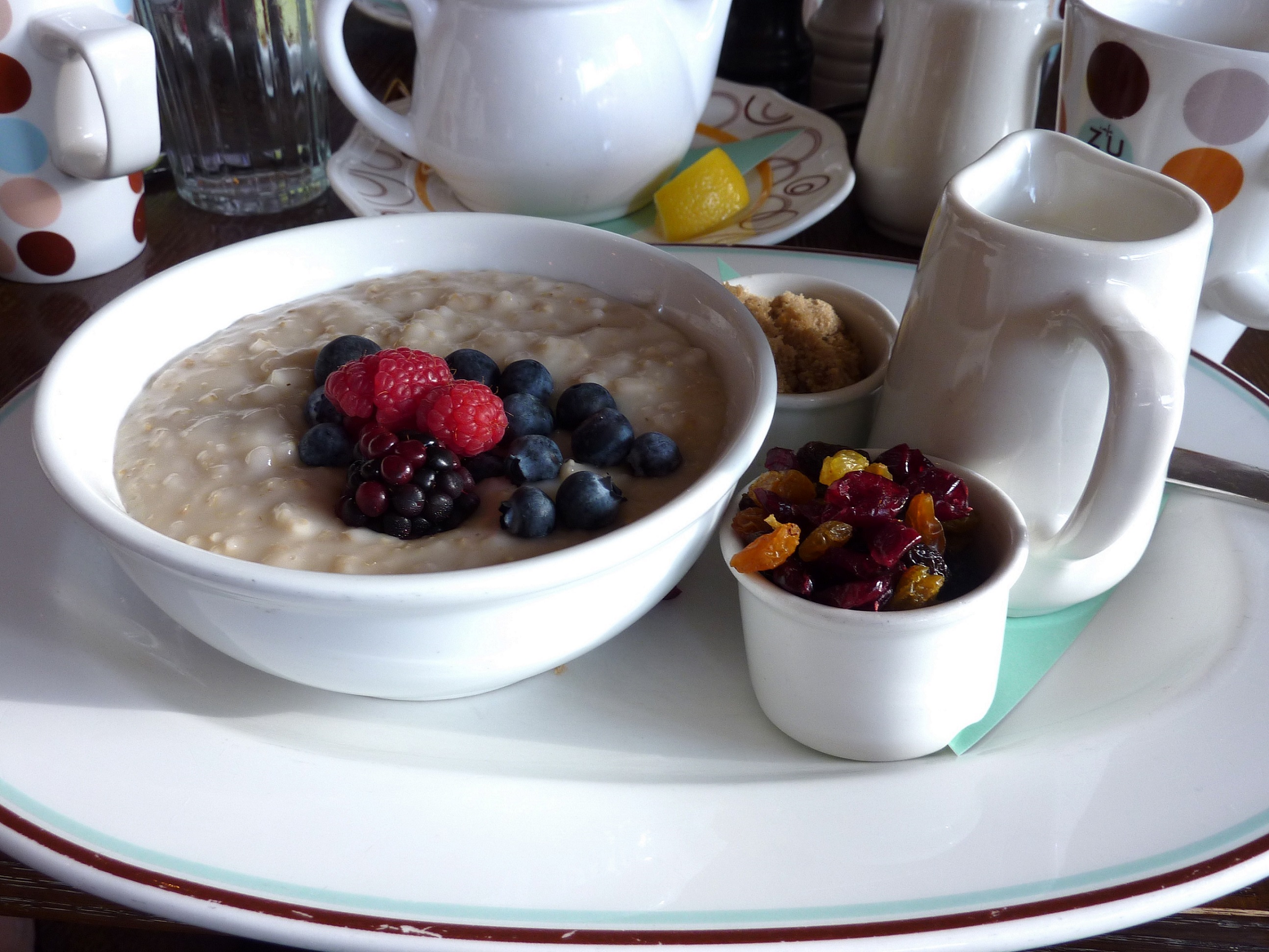 Snídaně: Teplá obilná kaše – například ovesná, jáhlová nebo pohanková s domácím jablečným kompotem a skořicí, ovocný čaj.