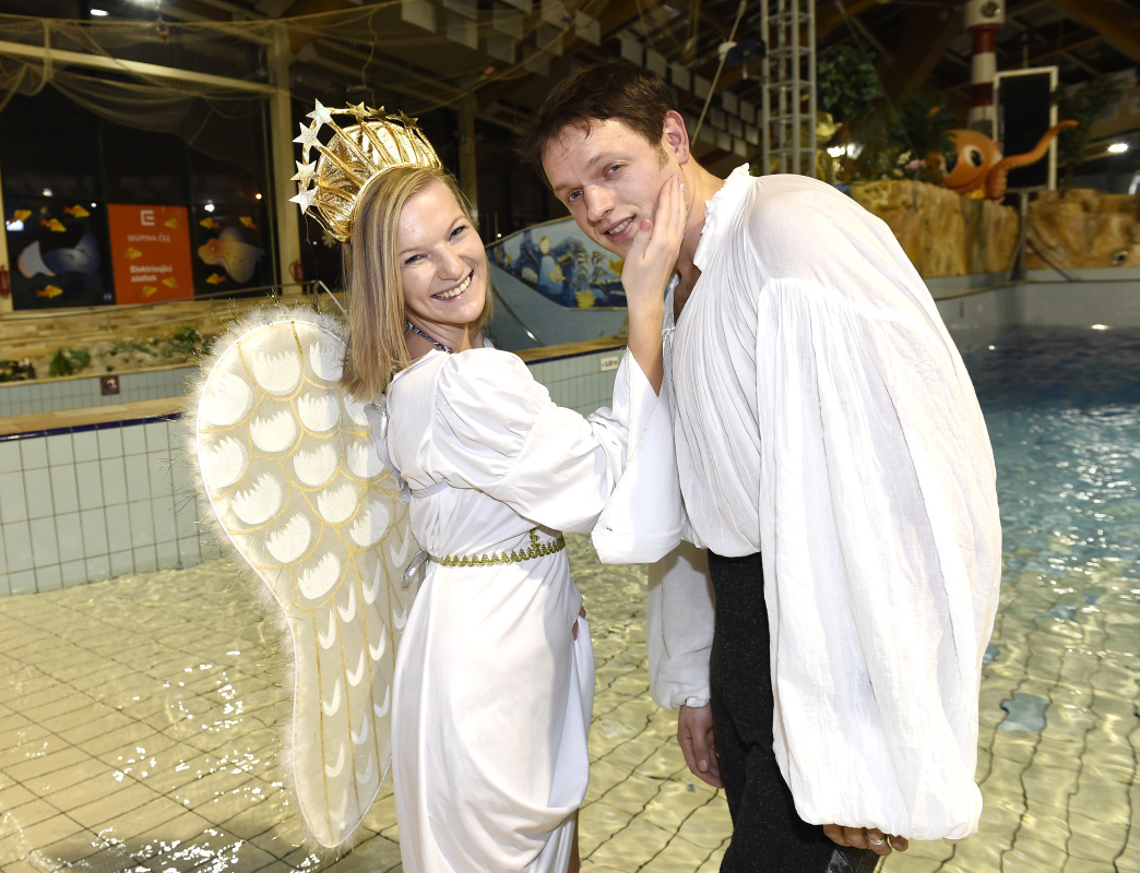 V areálu aquaparku bylo krásné teplíčko a tak není divu, že se tam všem moc líbilo. Zpěváci se pohybovali po hladině bazénu a dováděli, co jim kostýmy dovolily. Měli na sobě totiž garderobu z představení Mefista. Přidal se i Anděl, Mikuláš a Čert.    Všichni se brzy spřátelili, zkrátka tomuto ďábelskému triu nikdo neodolá. „ Je mnohem příjemnější trávit mikulášský večer v teple, než mrznout někde na náměstí. Je tady výborná atmosféra,“ pochvalovala si prostředí Karolína Gudasová, jež na sobě měla krásné bílé šaty, které ji doprovází v roli Markétky.