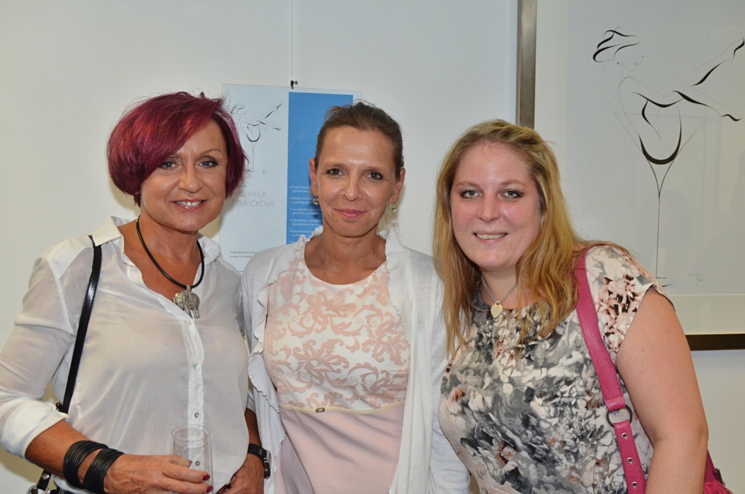 Hned tři české zpěvačky se sešly na vernisáži prodejní výstavy unikátních černobílých obrazů malířky Michaely Žemličkové v pražském centru Iscare. Petra Janů, Petra Hapková a Gabriela Gunčíková obdivovaly akty i další témata malířky, které většinu děl maluje takzvaně jedním tahem.